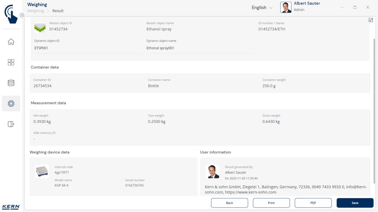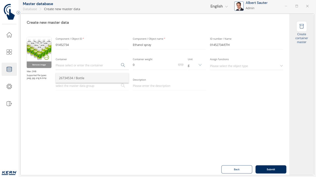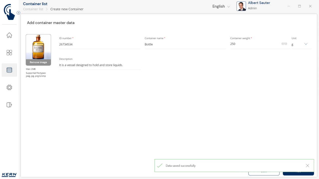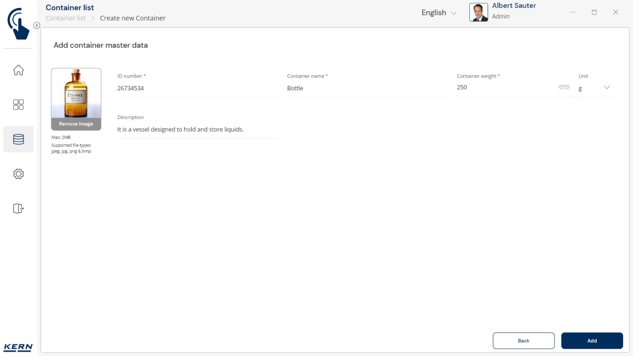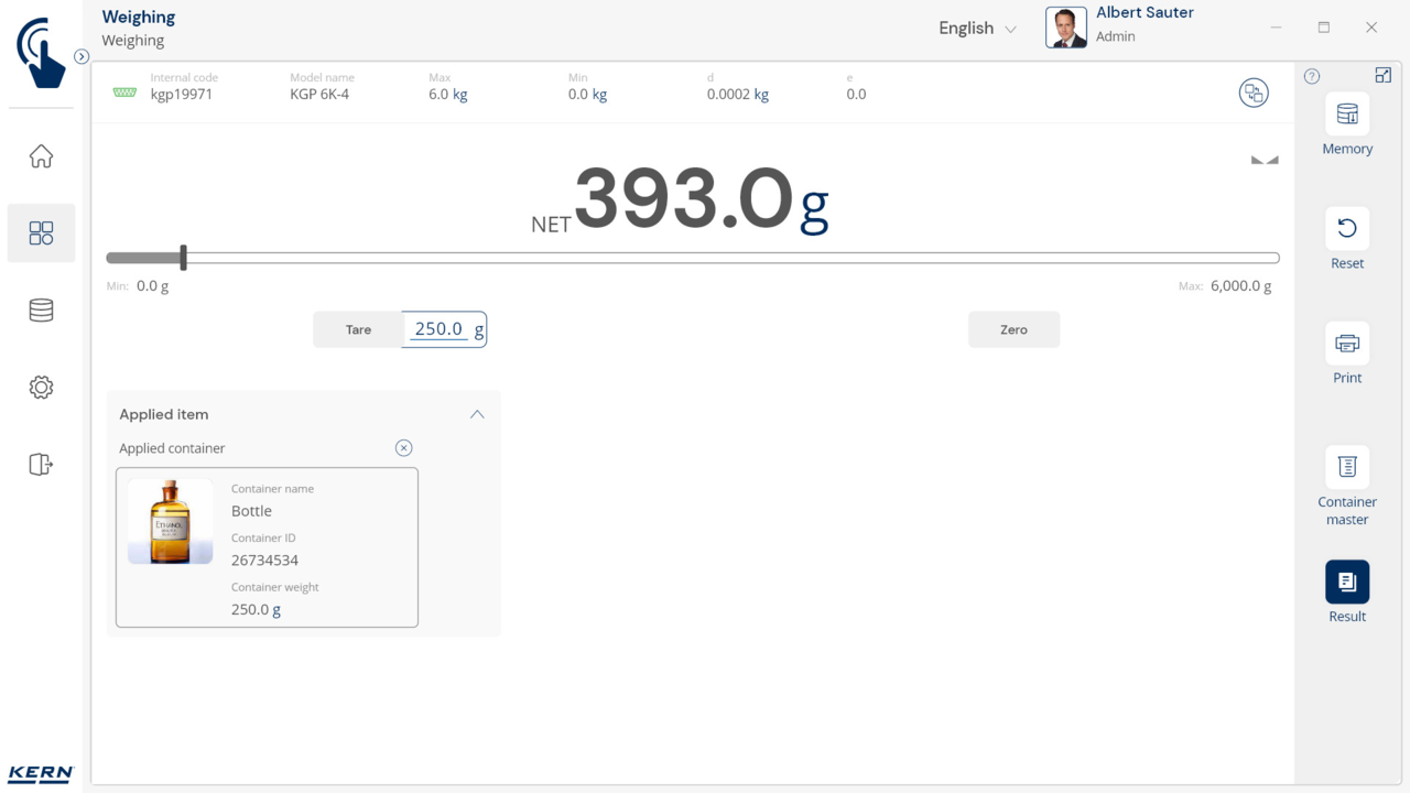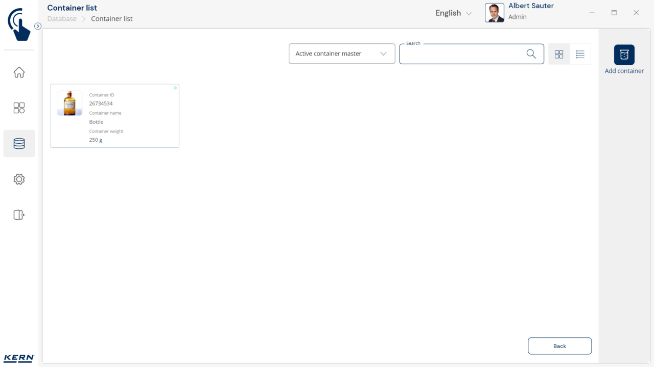 Container management: Different items are stored and weighed in similar containers. The tare weights of these containers can be managed centrally with SET-18 Container Master. If the weight of a container changes, the new tare weight is simply updated in Container Master and automatically applied to all associated items and functions in the application