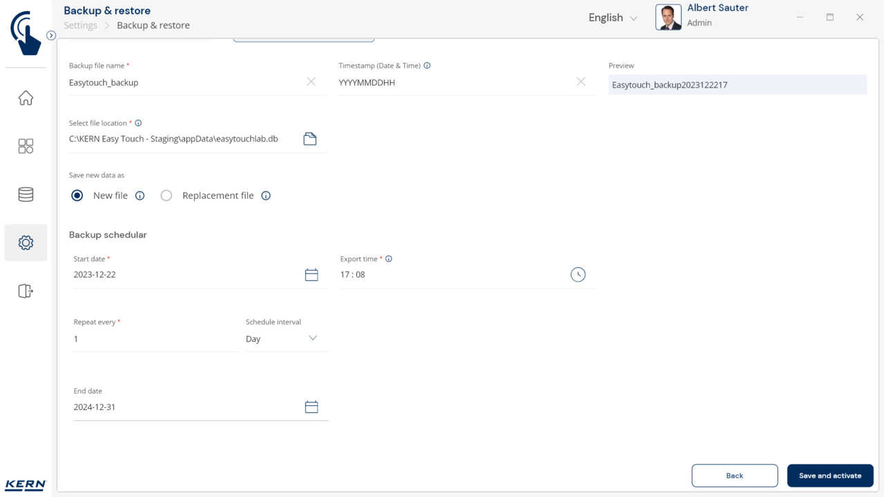 Automatic data backups: Save time and money through automatic backups at defined intervals. This ensures consistent, reliable record keeping, reduces downtime and minimises the risk of data loss in the event of disruptions