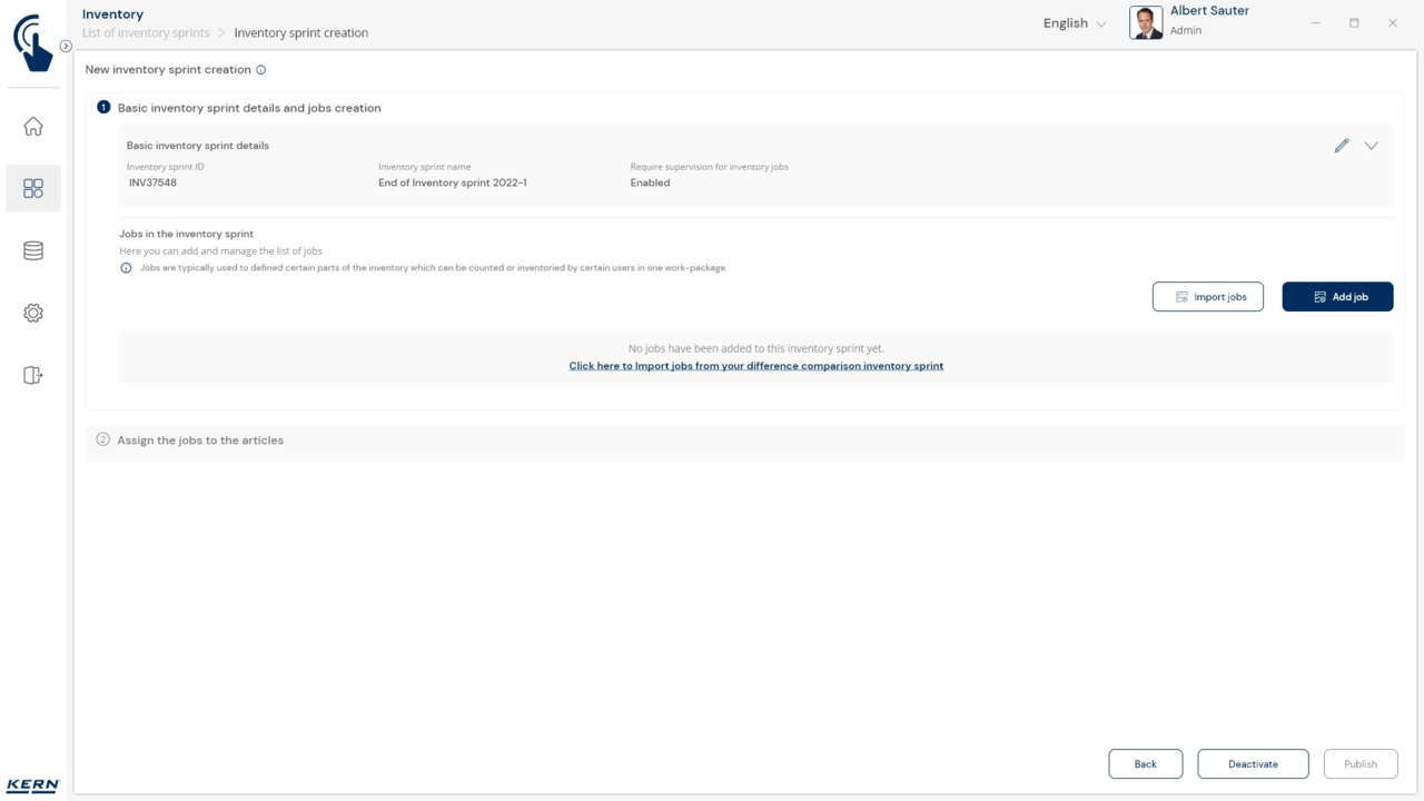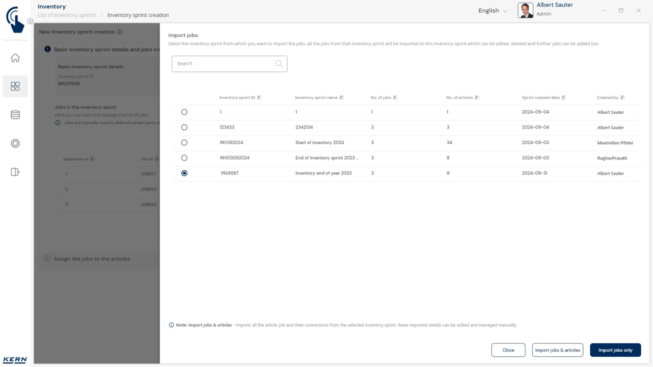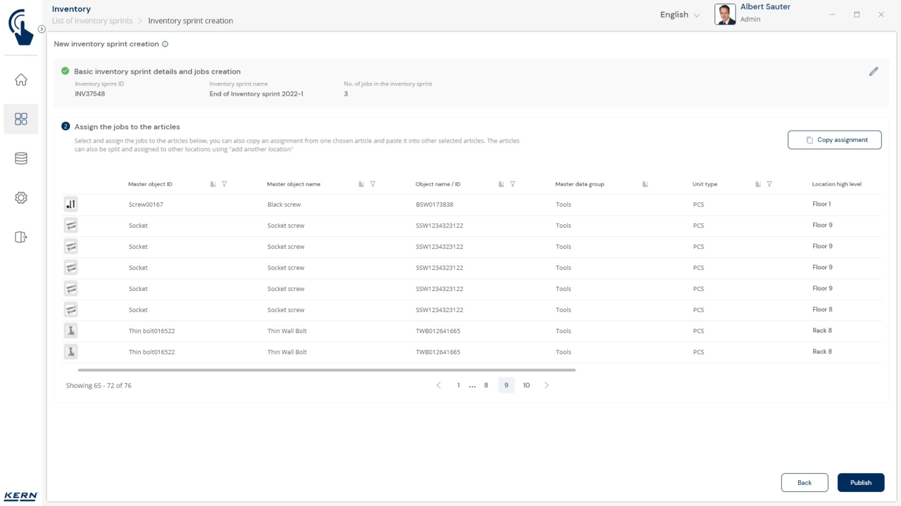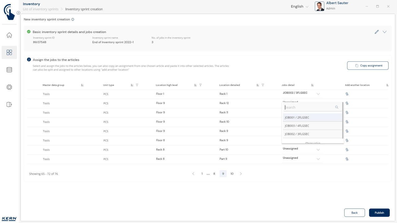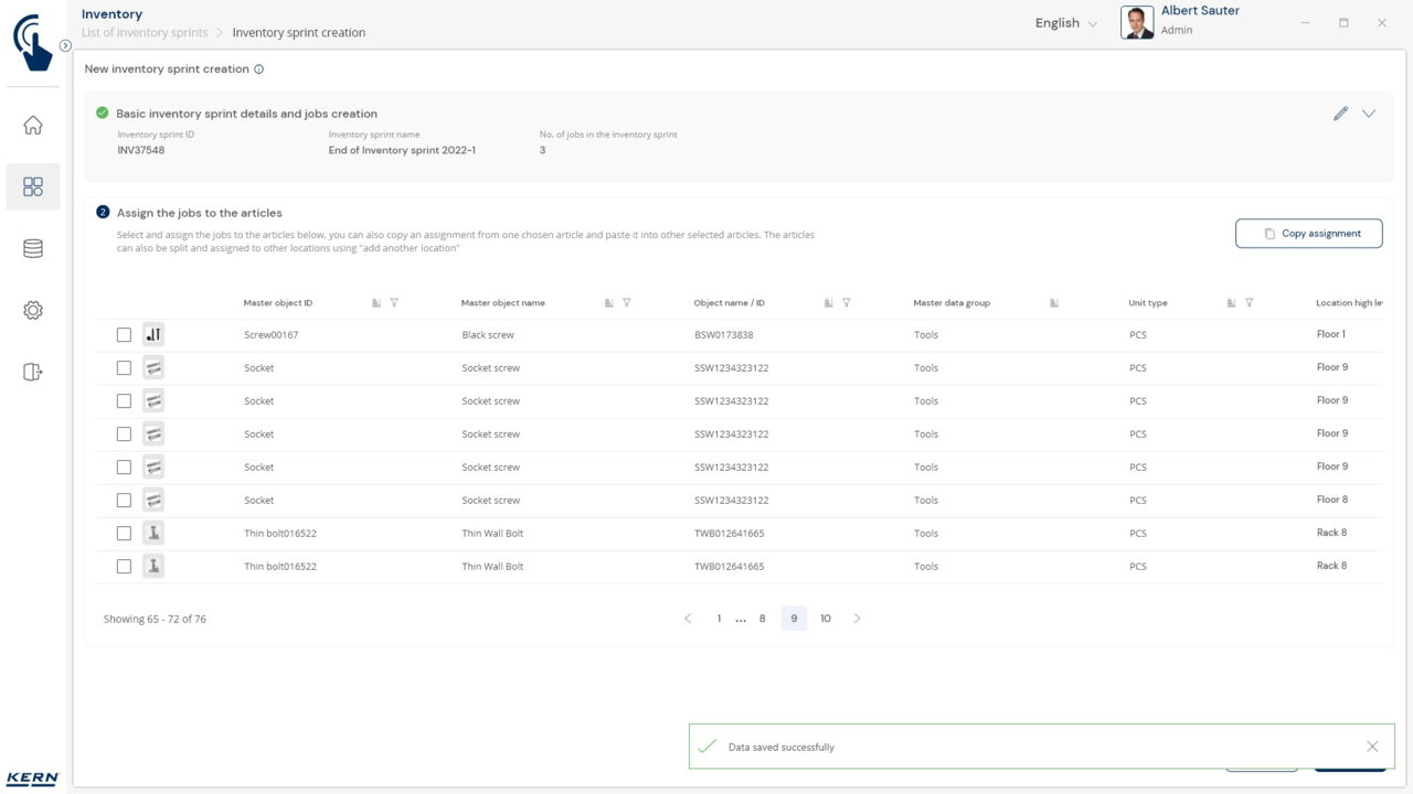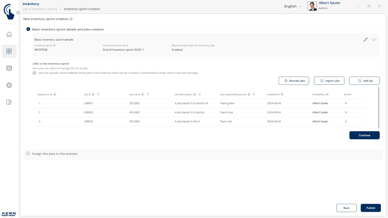 Organising the stock-take: Each stock-take can be divided into different "jobs" – depending on the storage location, product group, etc. Each stock-taking job is carried out, completed and saved individually. This makes it possible to divide large stock-takes into meaningful subsections and have them processed by different teams